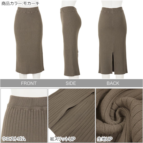 ≪WINTER SALE≫ 裾スリット入りウエストゴムリブニットタイトスカート [M3092]【入荷済】 レディース Iライン ロング丈 膝下丈 ニットスカート 着回し 冬 スカート 秋 秋冬 タイトスカート 黒 ミモレ丈 スリット リブ リブニット ニット リブスカート タイト