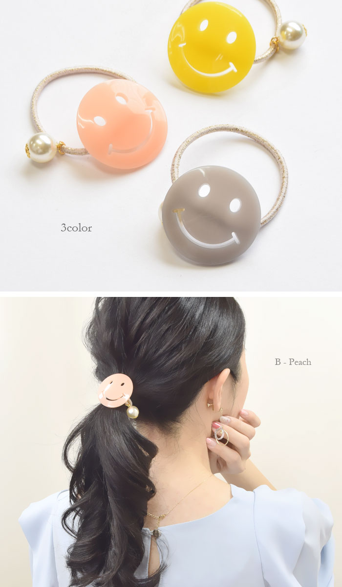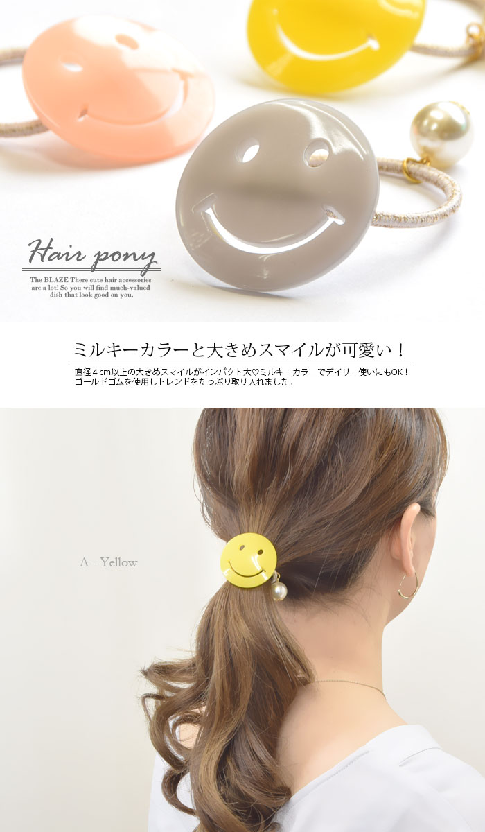商品名 スマイルヘアゴム(パール付き) (dpy-550-008) STAFFコメント 人気のにこちゃん!大きめモチーフでソフトなカラーのヘアゴム♪