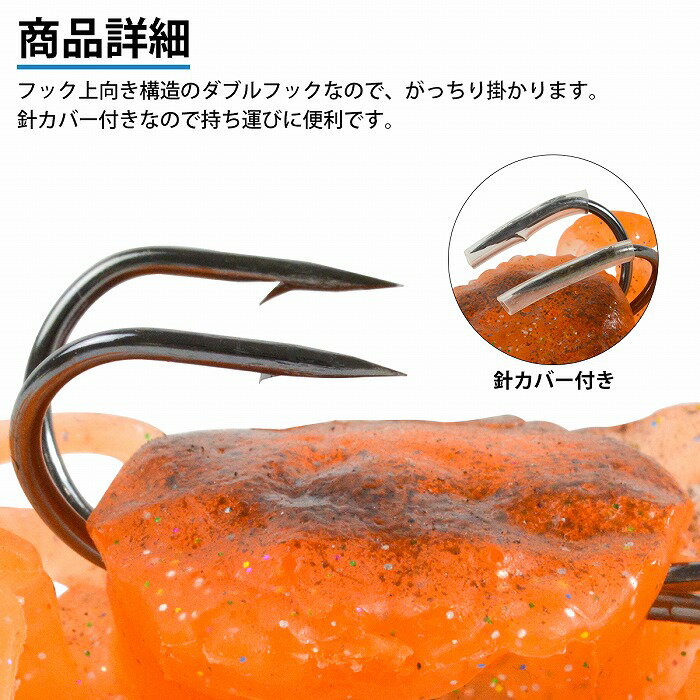 小型でも大型でも問わず、掛かり易い針を採用した定番のタコ掛!ソフトカニは人気のカラーを使用しました!重量:約65g全長(フック部分含む):約14.5cm※商品発送日より7日間の初期不良対応。
