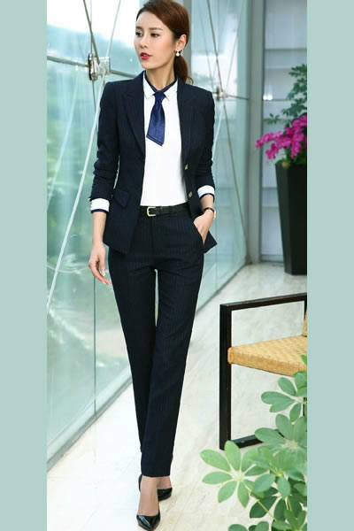 パンツスタイル&スカートスタイルのストライプ柄ベーシックスタイルスーツです♪
