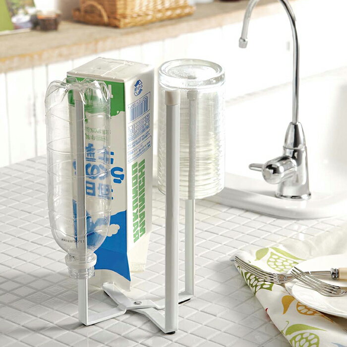 「キッチンエコスタンド」は、ペットボトルや牛乳パックなどのリサイクルごみを、逆さまにして乾かせる、便利なスタンドです。