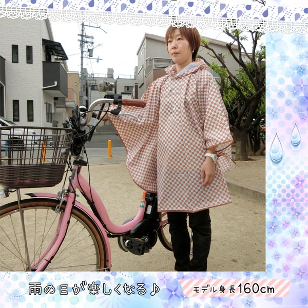 【ネコポス便発送可】98752S/ジップコーポレーション/☆びっくり超特価!☆[RAIN PONCHO LADY'S]レインポンチョ/レディースサイズ(チェック・ベージュ)/大人/通勤/お買い物/雨/梅雨/レインコート/プレゼント/ギフト/