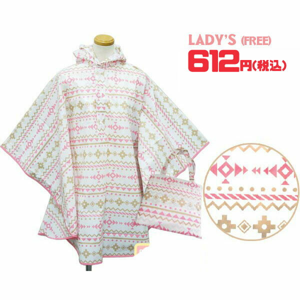 【ネコポス便発送可】98761S/ジップコーポレーション/☆びっくり超特価!☆[RAIN PONCHO LADY'S]レインポンチョ/レディースサイズ(キリム・ライトピンク)/大人/通勤/お買い物/雨/梅雨/レインコート/プレゼント/ギフト/