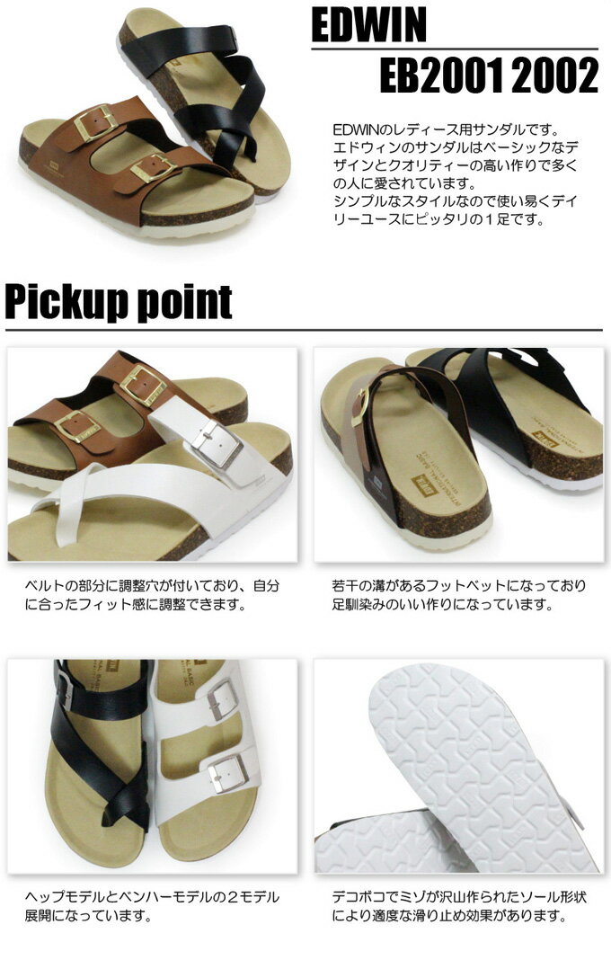 メーカー希望小売価格はメーカーカタログに基づいて掲載しています 商品名 サンダル レディース フットベットサンダル フラットサンダル オフィス EDWIN EB2001 EB2002 コンフォートサンダル エドウィン レディースサンダル 女性 立ち仕事 紳士靴 おしゃれ 商品特徴 EDWINのレディース用サンダルです。