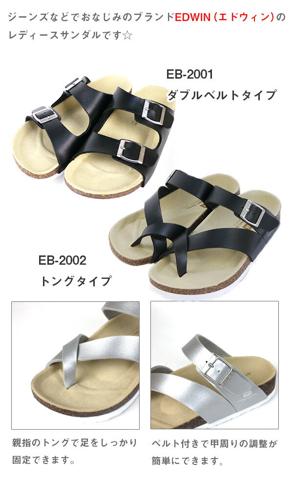 EB2001:ダブルベルトタイプ EB2002:トングタイプ ■素材■ アッパー:合成皮革 底:合成底 ■詳細■ 片足重量:250g※23cm 中敷き 縦の長さ:23.0cm 中敷き 横幅:7.8cm ヒールの高さ:2.5cm ソールの厚み:2.0cm ■サイズ■ 23cm 24cm 25cm ■商品の色味について 写真撮影の際、実物と同じ色を出せるよう注意しておりますが、 お客様のディスプレイの設定等により実物と色味が異なる場合がございます。